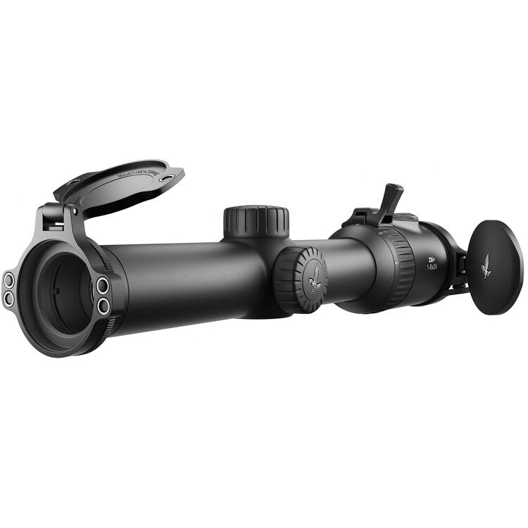 Designed for the fast action of driven hunts and stalking expeditions, the 1-8x24 Z8i+ Riflescope delivers a wide field of view and a bright, sharp image thanks to its high-quality optical system and fully multicoated lenses. This scope focuses quickly thanks to its throw lever and short 160° rotation, and shows a generous 193' field of view. Impact point adjusts at 1/10 MRAD, with a total adjustment range of 20 MRAD elevation and windage. The 4A-IF illuminated reticle, inspired by the German #4 outline, sits in the second focal plane and features three medium posts, a fine crosshair, and an illuminated center circle dot with 64 brightness levels. The FLEXCHANGE intelligent tilt sensor turns the reticle on when the rifle is raised or lowered to firing position. This fog and waterproof optic was impeccably constructed from high-quality, lightweight, and durable aluminum with a matte black corrosion-resistant anodized finish. This version of the Z8i+ mounts on user-supplied rings.